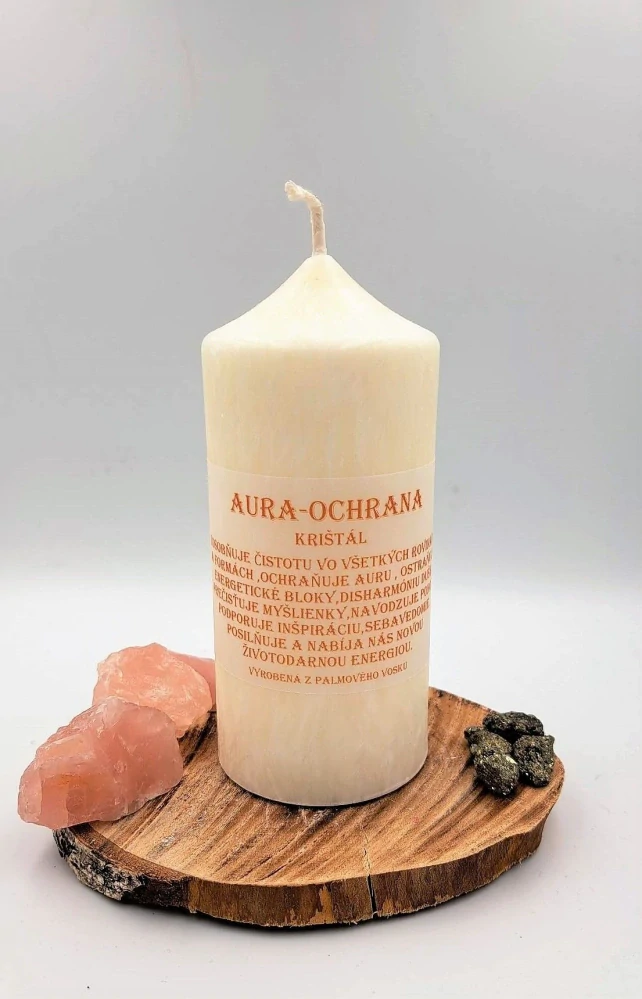 Aura - Ochrana je plnofarebná sviečka bielej farby. Sviečka je vyrobená zo 100% palmového vosku.
