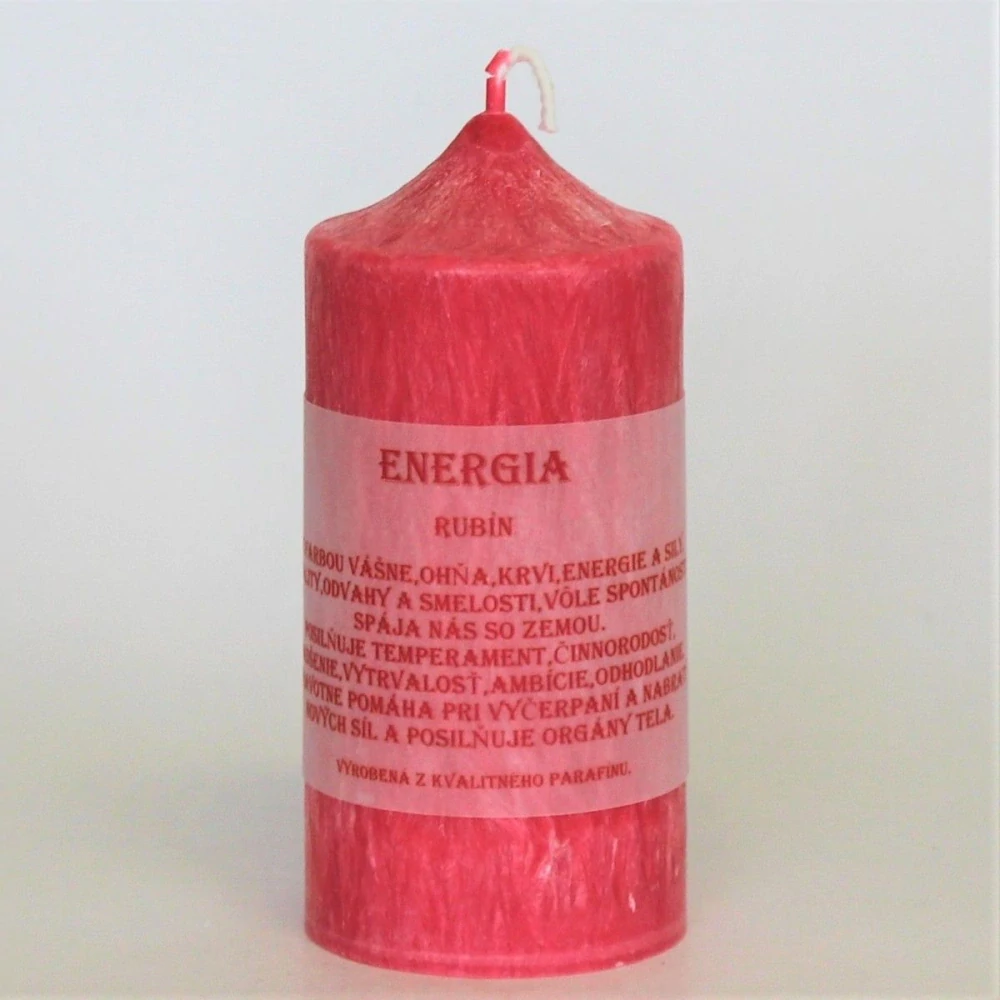 Energia je plnofarebná sviečka červenej farby. Sviečka je vyrobená zo 100% palmového vosku.