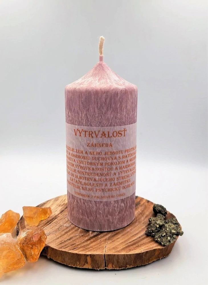 Vytrvalosť je plnofarebná sviečka vyrobená zo 100% palmového vosku.